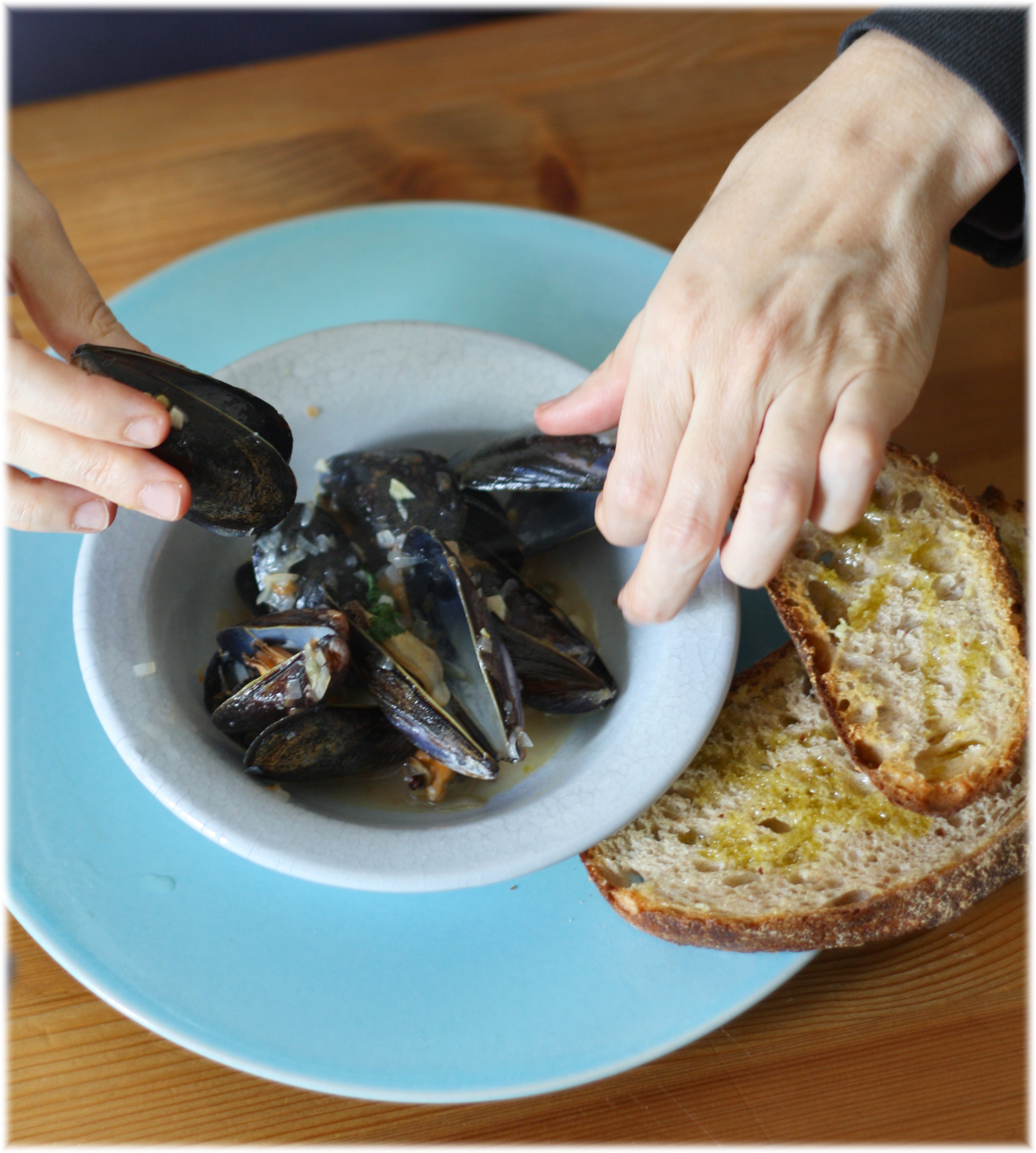המולים מקבלים טעמים עדינים של יין וטרגון ונותנים בתמורה קצת מליחות של ים. ביחד עם הלחם ואיזשהו סלט מעניין- יצרו יופי של ארוחה.