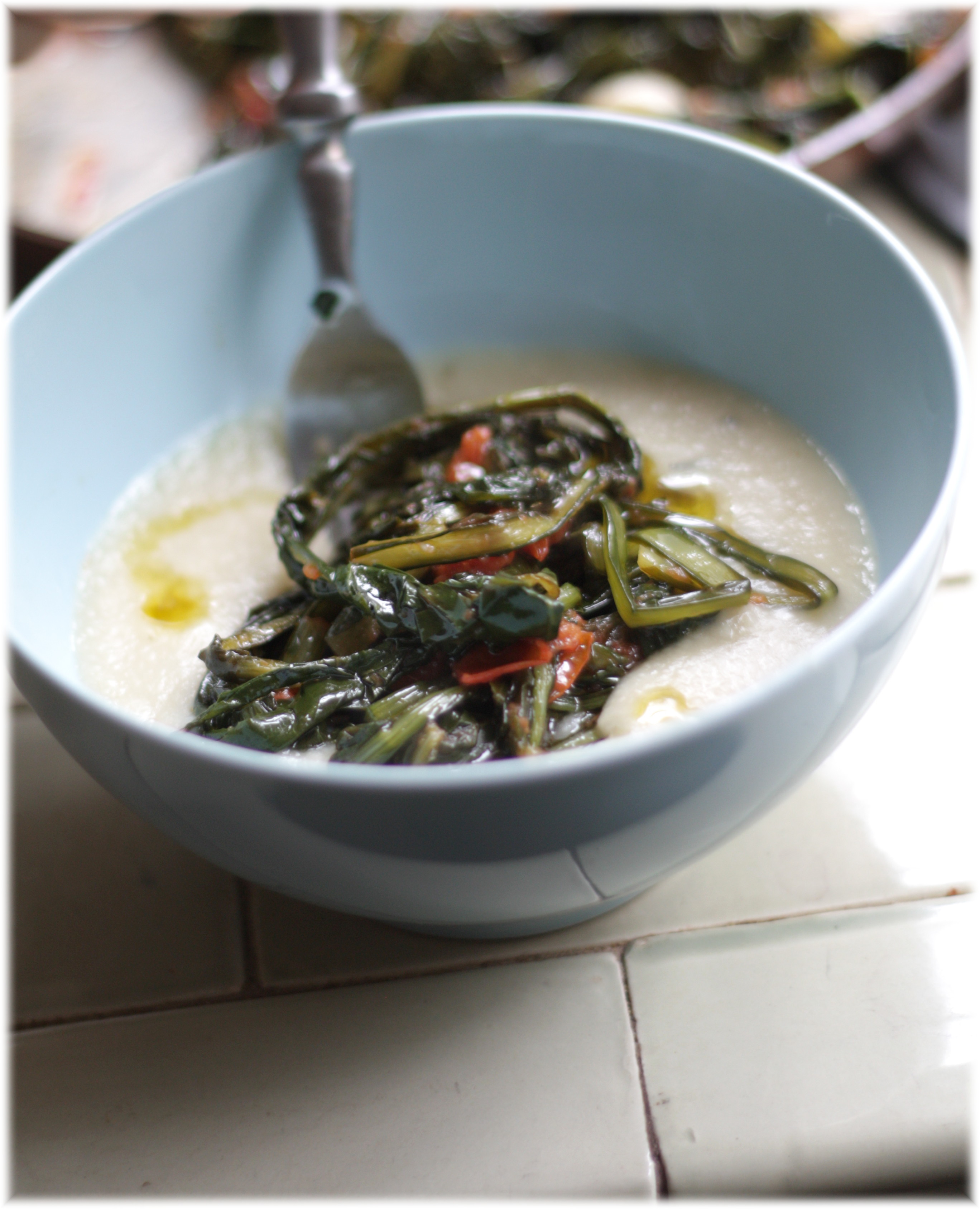 חוזרים לשעועית- כשהיא רכה רכה מעבירים אותה לפוד- פרוססור או בלנדר ומרסקים. כדאי לא להוסיף ישר את כל הנוזלים אלא בהדרגה. הסמיכות צריכה להיות כשל דיסת פולנטה דלילה או אם תרצו- מרק מחיתי סמיך מאד. בשלב הזה גם מתבלים במלח ועוד קצת שמן- זית. אני השתמשתי במרוה מגינתי שאפעס, אלוהים שכח לתת לה טעם של מרוה ולכן ע"מ לתת לשעועית עוד טעם- חיממתי מעט שמן-זית במחבת וטיגנתי קלות עוד מרוה קצוצה דק (הפעם מהגינה של האיטלקיה) וגם שתי שיני שום שלמות ומכוצ'צ'ות. את כל זה הוספתי לשעועית. נתן יופי של טעם. אבל יכול להיות שלא תזדקקו לכך וטעם השעועית יהיה מרוותי ומשמח גם בלי.