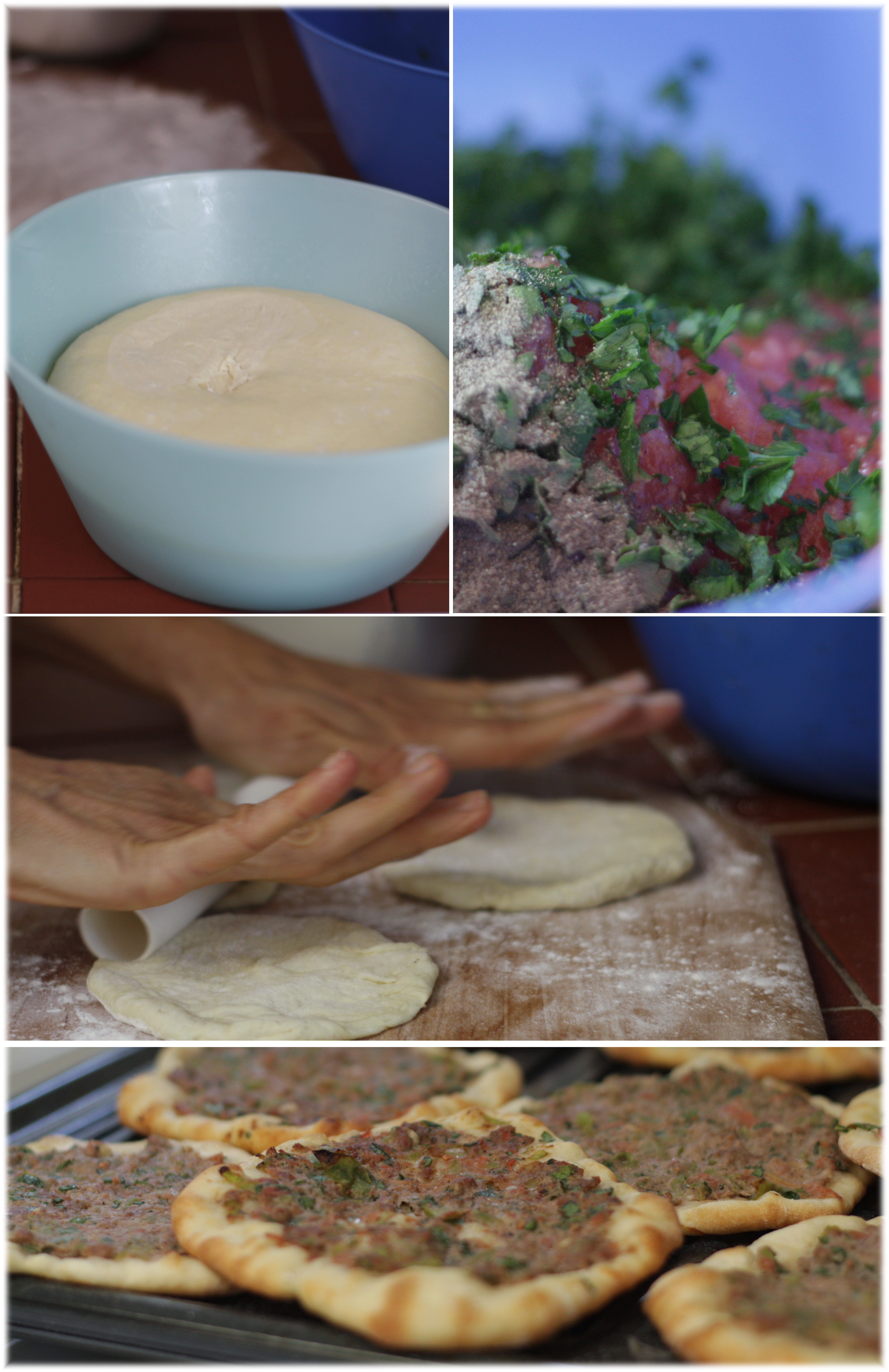 לא רק עלי גפן ארמניים הכנו באותו בוקר אלא גם את הלחמעג'ון המשפחתי שלה (ככה היא קוראת לזה, אני מכירה  לחמע בעג'ין ואתם בטח מכירים גרסאות נוספות)- שאלו הם מאפי בשר קטנים ומתובלים.