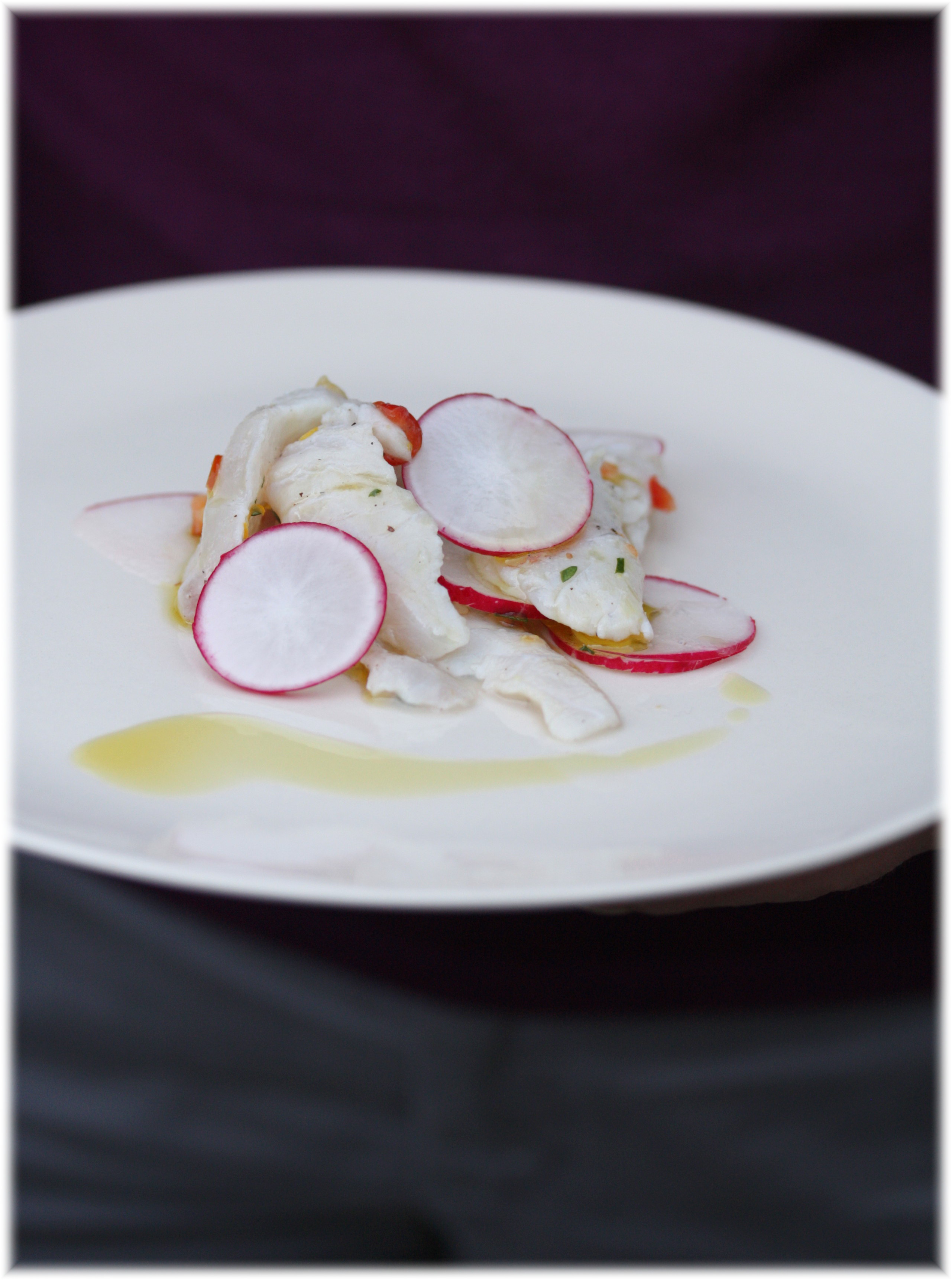 מערבבים הכל, מכסים ומשהים במקרר לפחות חצי שעה לספיגת הטעמים. הדג עצמו יקבל צבע לבנבן מהחומציות. מתקנים תיבול ומגישים עם צנוניות פרוסות דקיק ומעט שמן-זית (אני) או ככה נקי (כמו ה איגר)