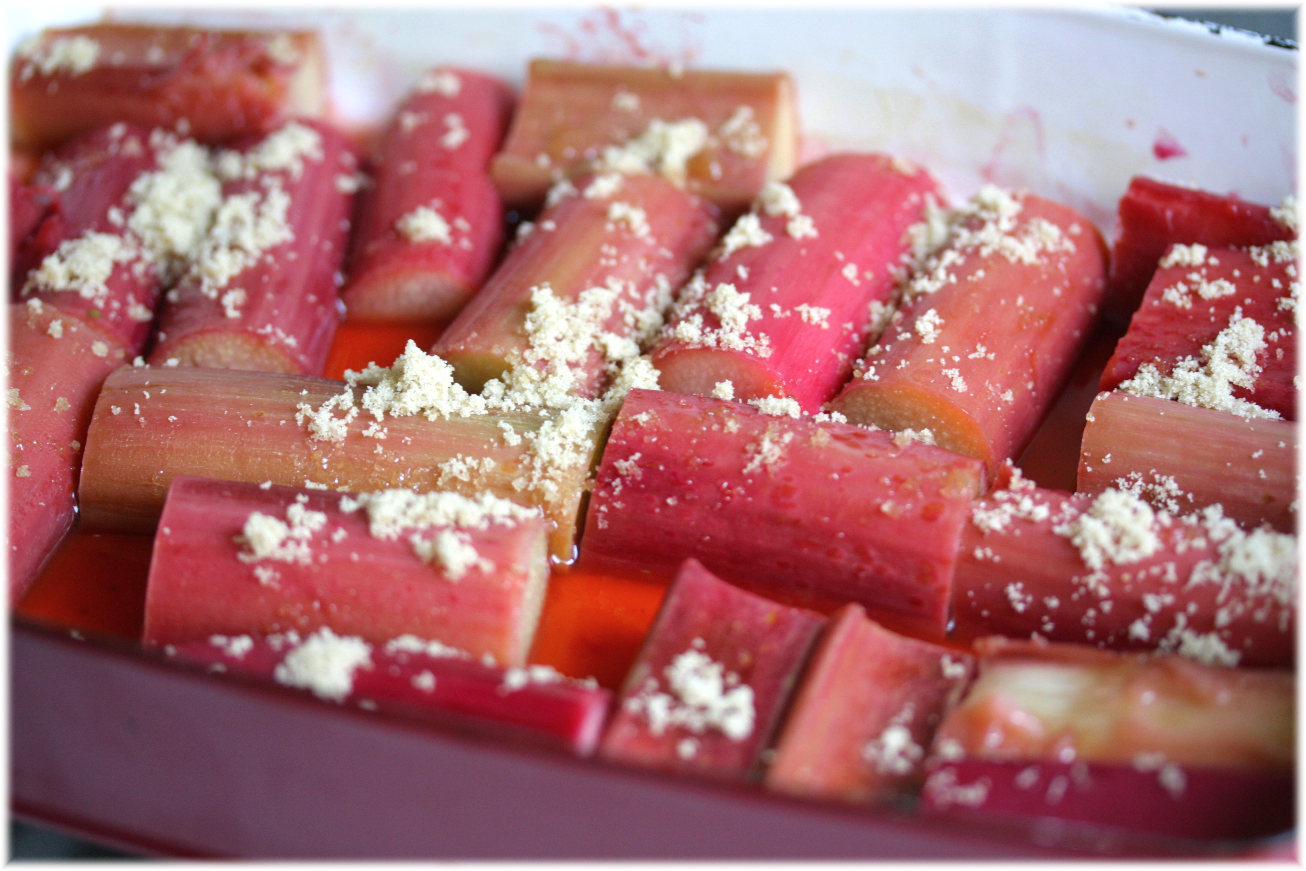 האמריקאים מכינים ממנו פאי, עוגות ועיקר העיקרים- מאפי פרי מכוסים בשכבת פירורים הנקראים 'קראמבל'. אני כנראה מעולם לא טעמתי אחד כזה מעולה או אולי פשוט לא אוהבת קראמבלס- איכשהו הם תמיד מתוקים לי מדי ושכבת הפירורים שלהם, לחה ודביקה במגע עם הפרי. מה שכן, נותנת כבוד לרוברב כמו כולם! כל שנה, כשהוא מופיע, אוחז בי דחף בלתי נשלט לקנות אותו. משהו בצבע הזרחני הזה לא נותן לי מנוח.