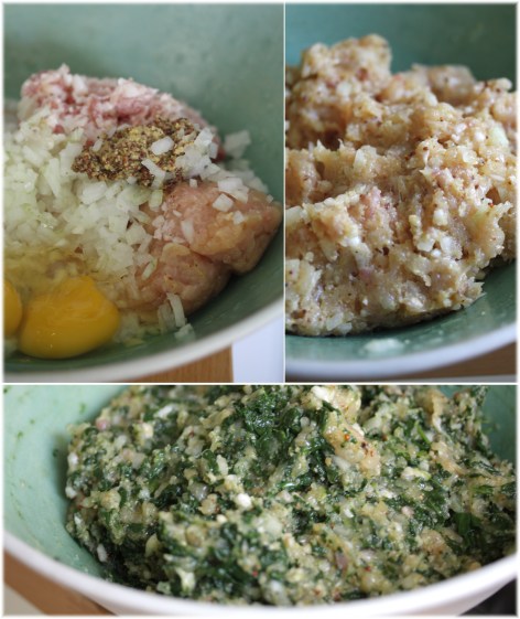 מערבבים היטב את העוף הטחון עם כל שאר החומרים ומוסיפים גם את התרד הקצוץ. אני בשלב הזה אוהבת לטגן חתיכה קטנה על מחבת בכדי לבדוק שהתיבול מספק.