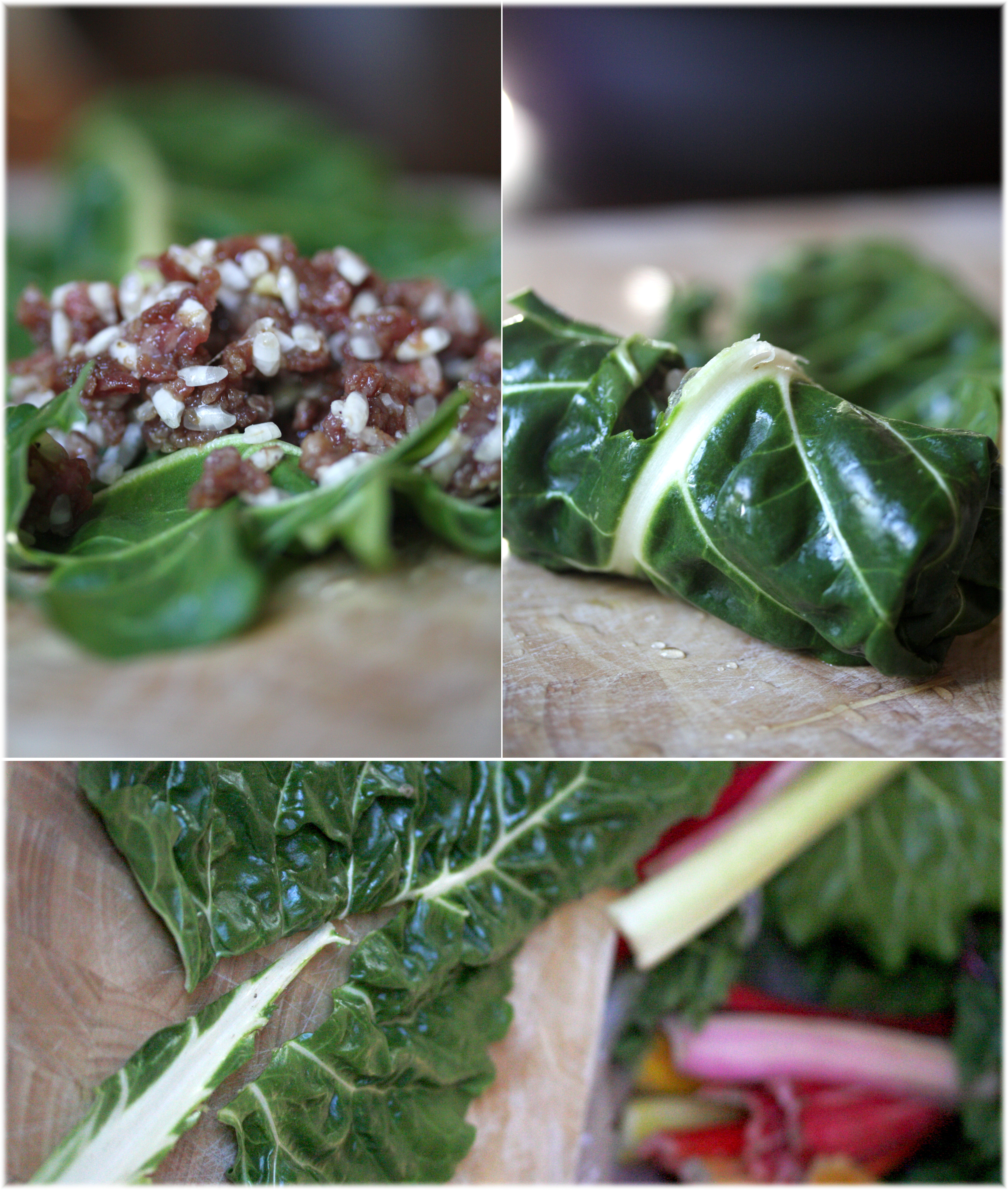 המנגולד היה קשה קצת, אז חלטתי אותו לכמה שניות במים רותחים, זה מקל על הגלגול.
