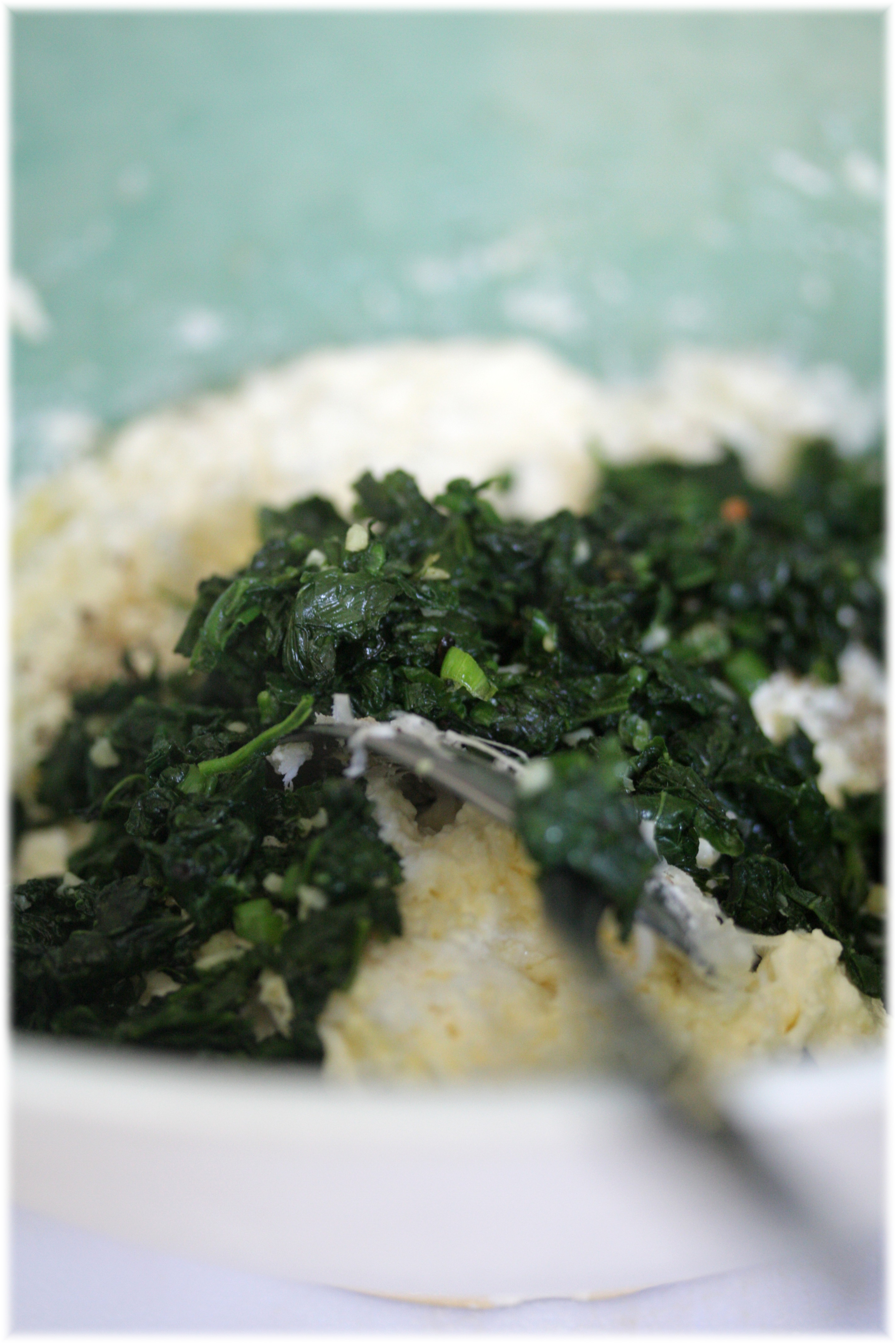 בקערה גדולה מערבבים: ריקוטה, פרמזן וביצה. קוצצים את תערובת החובזה (גס או דק, איך שתרצו) ומערבבים יחד. מתבלים היטב. מוסיפים את פירורי הלחם והקמח ומערבבים עד לקבלת תערובת אחידה.