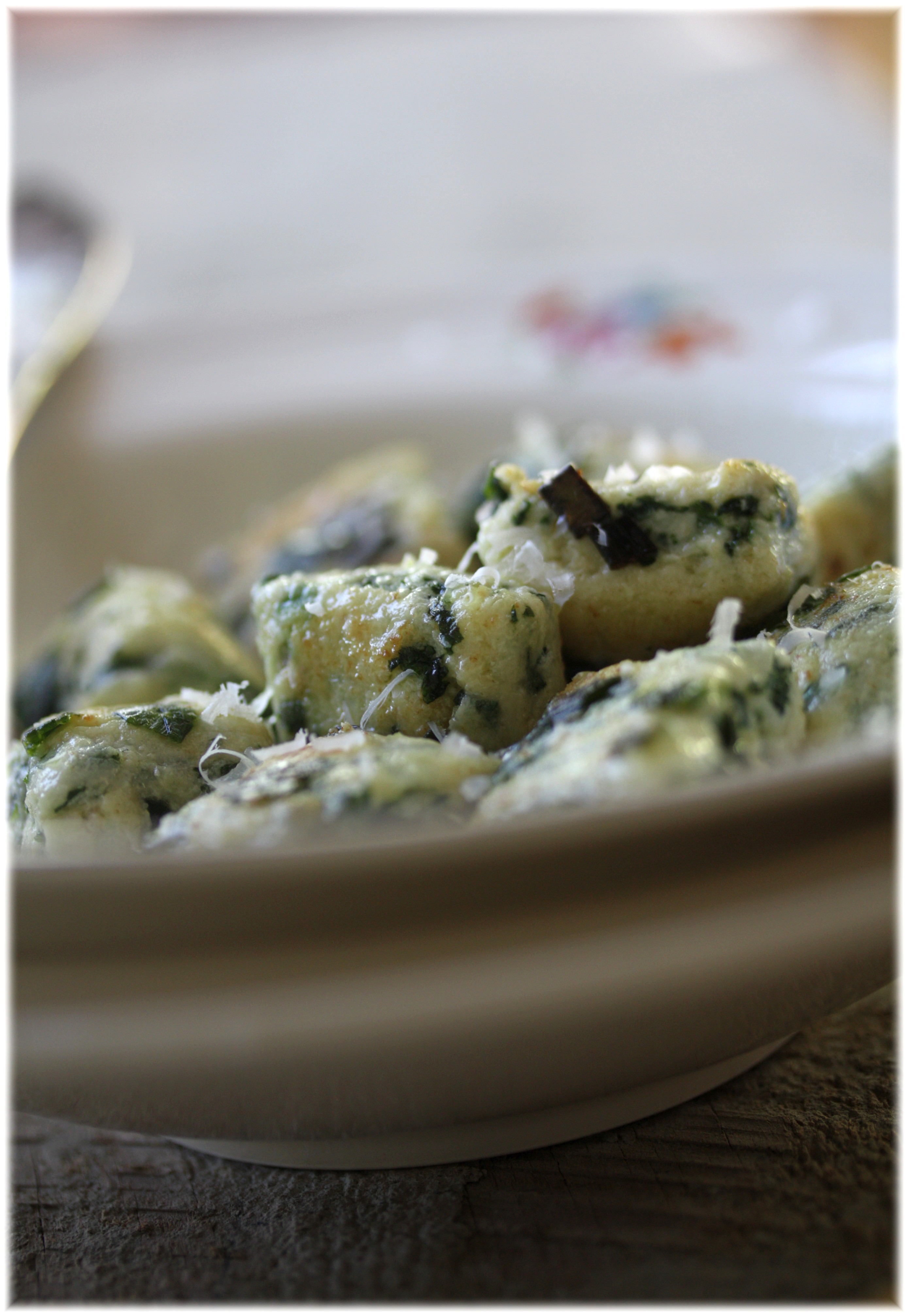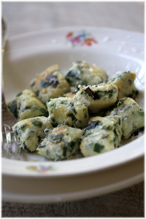 השבוע שעבר זימן לי מצבור נאה של עלים טריים וצעירים שטרם נכבשו כליל על ידי הצהובות השתלטניות. סלסלה שלמה של עלים במשקל מחצית הנוצה, הניבה 100 גר' לאחר בישול!  בעקרון, ניתן לשלב אותם בכל דבר במקום תרד: בקיש, בורקס, חביתות ומאפים. אני, שמחה במעט שיש לי, החלטתי לעשות איתה משהו מיוחד  ויצאו לי ניוקי מקסימים, שמיד לאחר הבישול הם ענניים ורכים כמו שמיכת פוך קלילה וקצת אחרי, מרקמם כשל בצקניות משמחות. טעים כך או כך. אפשר גם להקפיא.