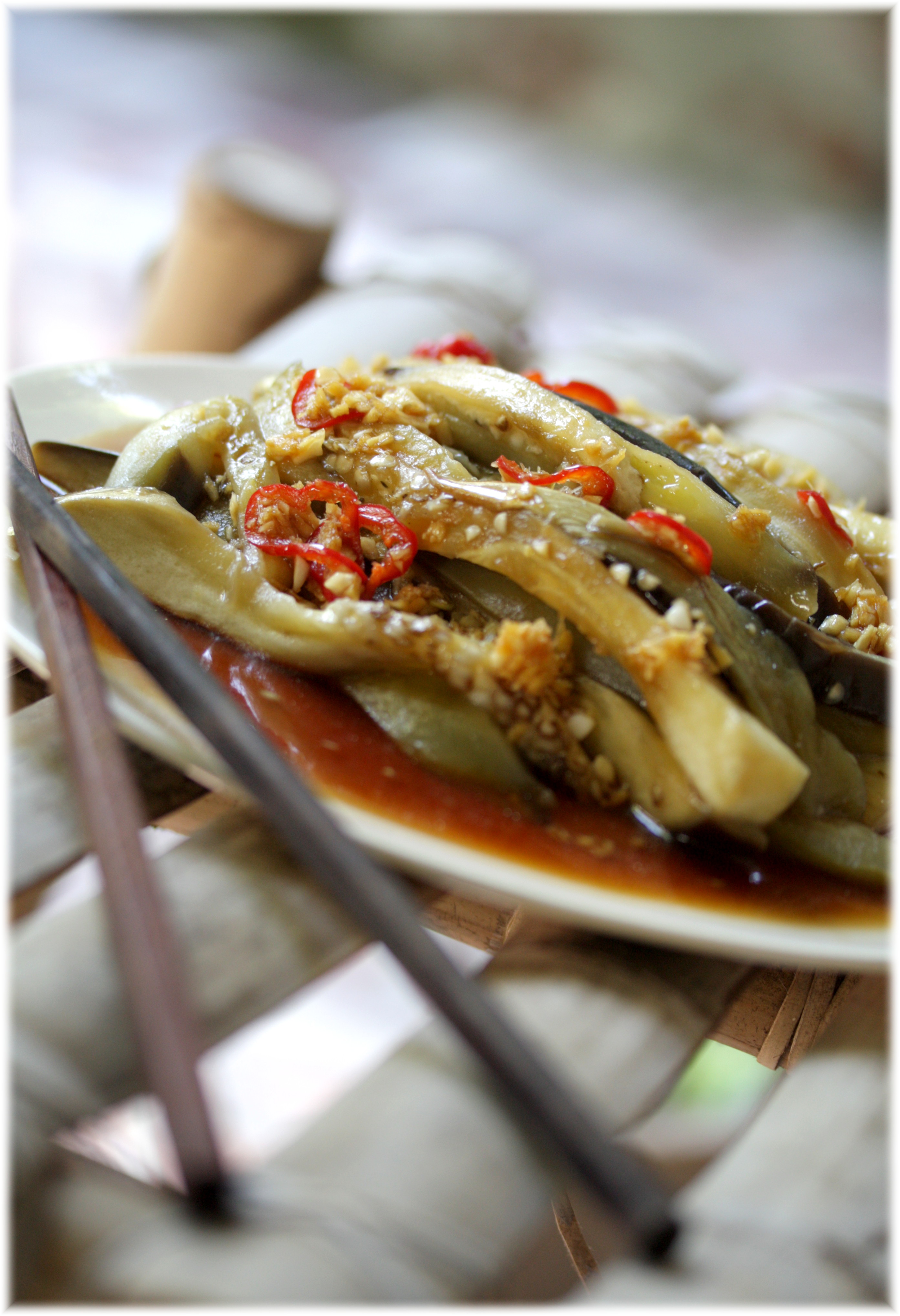 חצילים מאודים בתחמיץ סויה וג'ינג'ר זה נפלא. אני מכינה אותם ממתכון של אהרוני קלופים ומאודים בשושנת אידוי וחתוכים למקלות אחרי האידוי בתוספת חופן רציני של בצל ירוק קצוץ שמוסיף טעם ודקורציה.