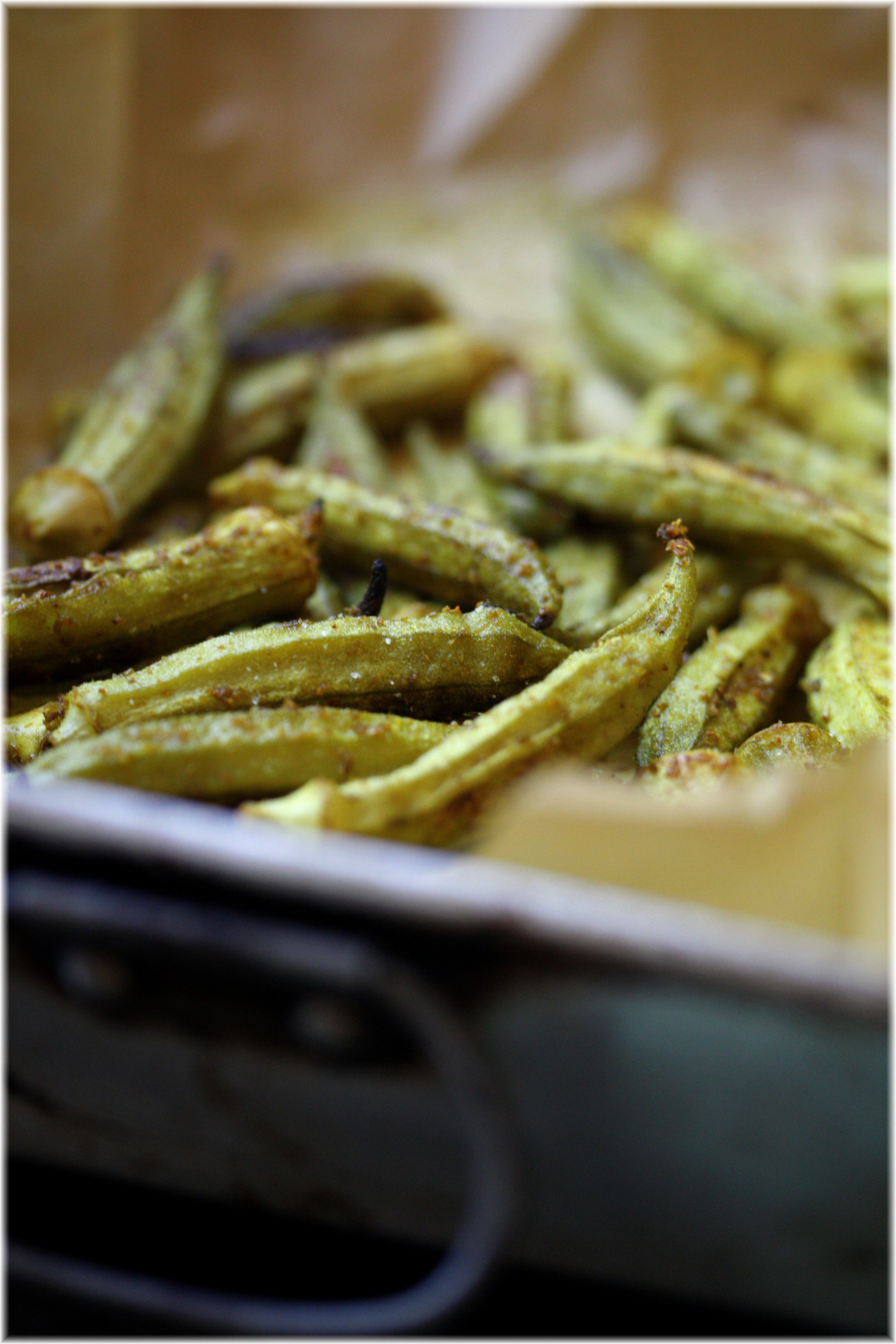 אחת בשם לורי ספרה לי בבלוג שהיא צולה את הבמיה שלה בתנור! מאחר ומעולם לא שמעתי ולא ניסיתי באה הסקרנות והרבה אחריה באה הבמיה של יחזקאל ישר מהשדה, יפה כל כך שמילים לא יעשו לה טוב- ירקרקה עם קצוות ורדרדים, טריה הכי שיש. אל תקחי את הקטנים, תשמעי לי רק את הגדולים, אלו נמסים בפה. איפה כל מה למדתי על זה שבמיה צריכה להיות קטנה קטנה אחרת היא סיבית וגסה?