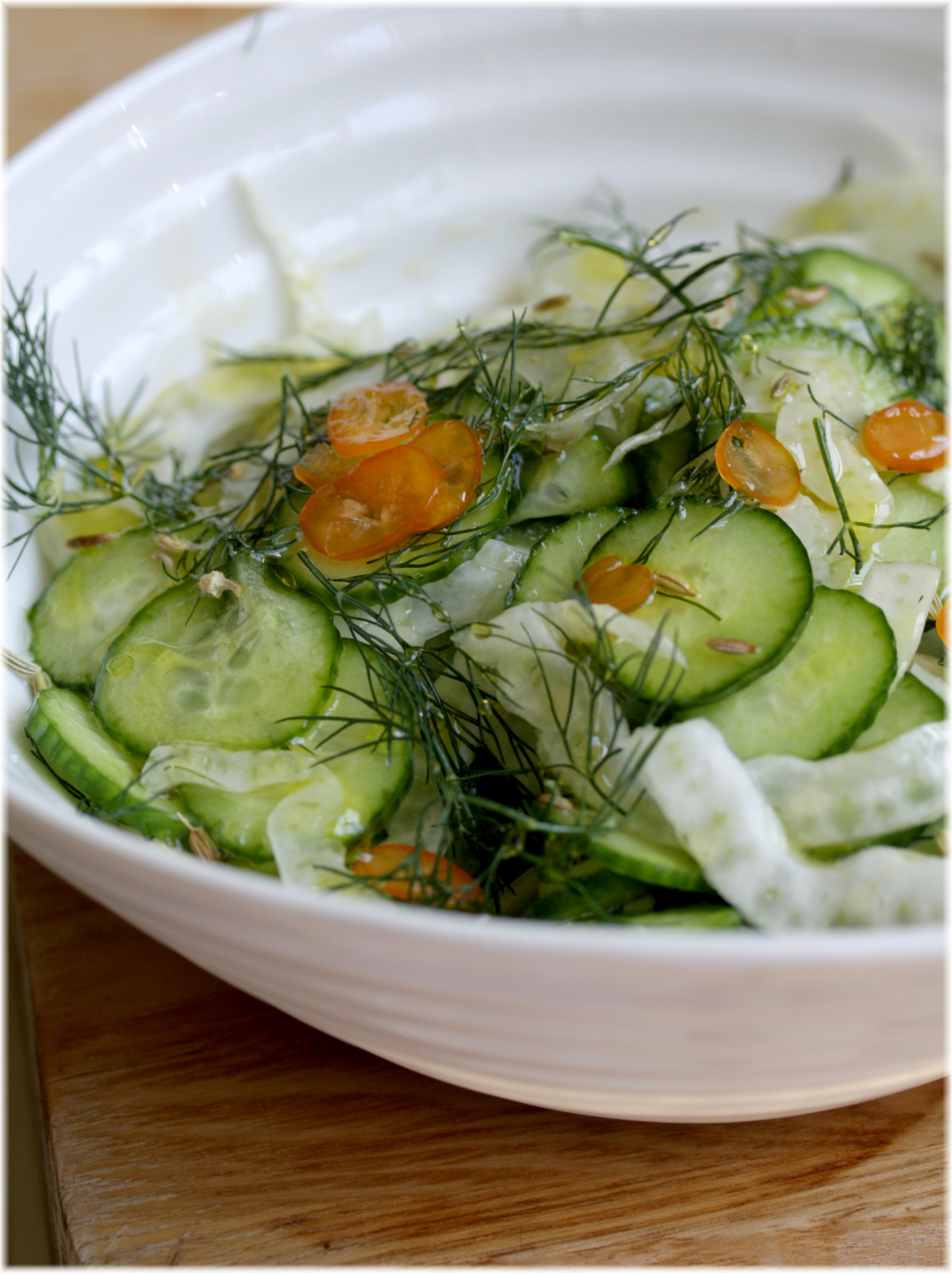 הסלט הזה הוא טוויסט מרוקאי קליל לסלט המלפפונים-שמיר המתקתק של סבתא שלי.