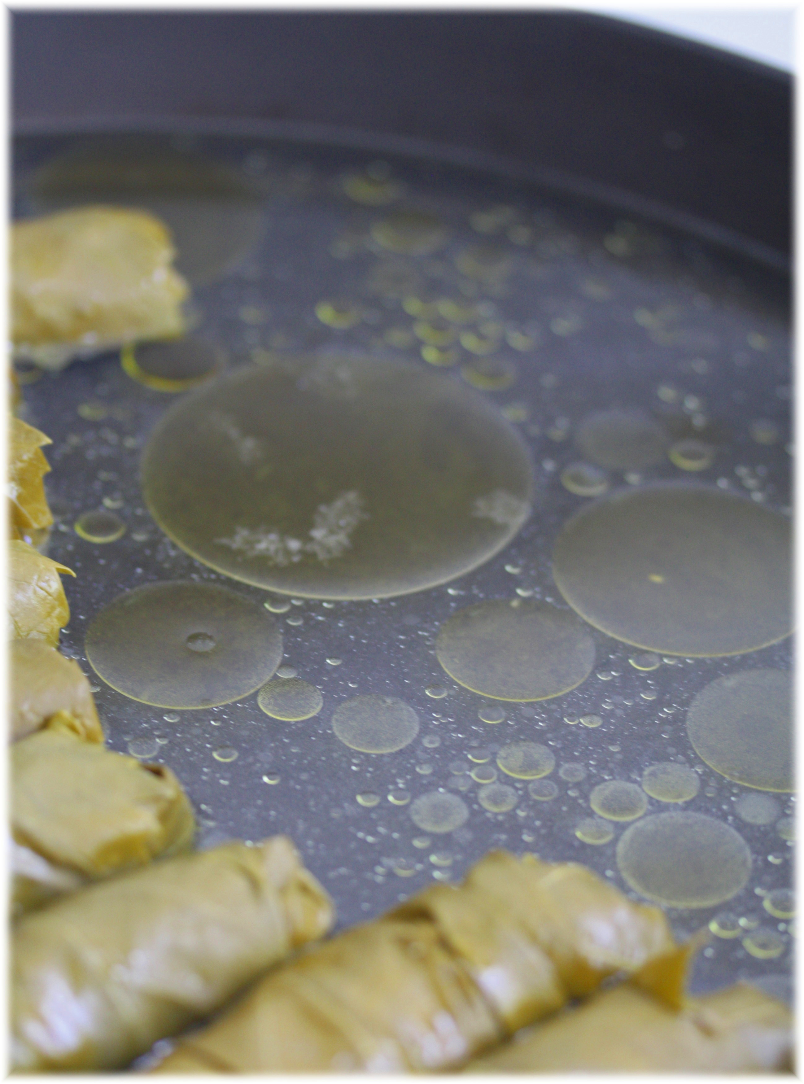 מניחים את העלים המגולגלים בצפיפות אחד ליד השני. מניחים מעל צלחת הפוכה (שלא יצופו להם ויפתחו בבישול) ומכסים במכסה הולם ותואם. מביאים לרתיחה ומבשלים על אש קטנטונת כשעה ורבע. נחמד אם נשארים מעט נוזלים בתחתית. נותנים לנוח ולהתקרר מעט. מזליפים עוד כף של שמן- זית מעל ונהנים מכל ביס.