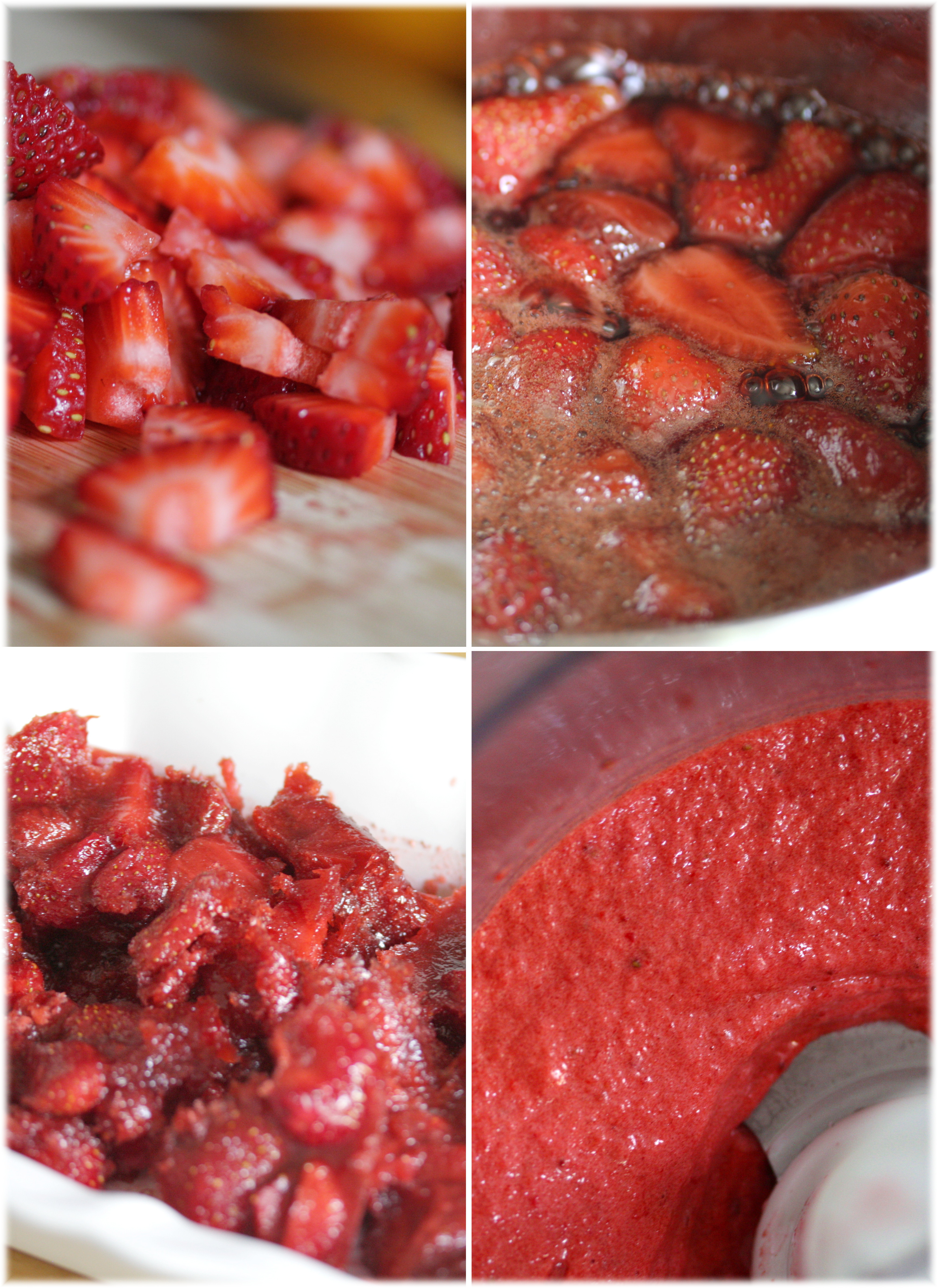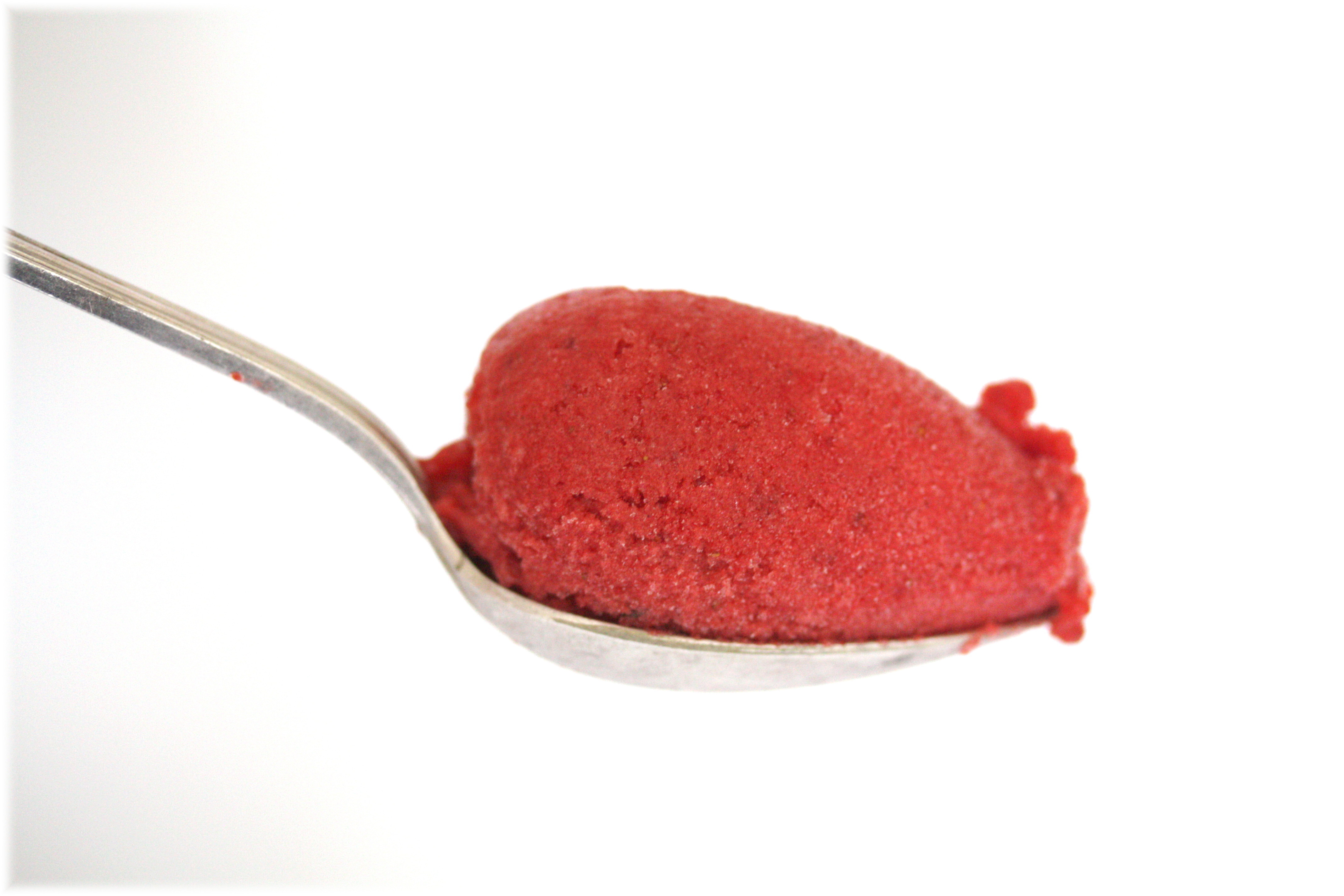 הגענו הביתה עם טון וחצי של תותים. קצת אכלנו, קצת קילקלנו, קצת נשאר למחר וגם לריבה -כי אין כמו ריבת תותים אמיתית של בית ומאלו שקצת נמעכו הכנתי סורבה באדום עז, שהוא דרך מעולה לשמר תותים ולקרר את הגוף בימים חמים.