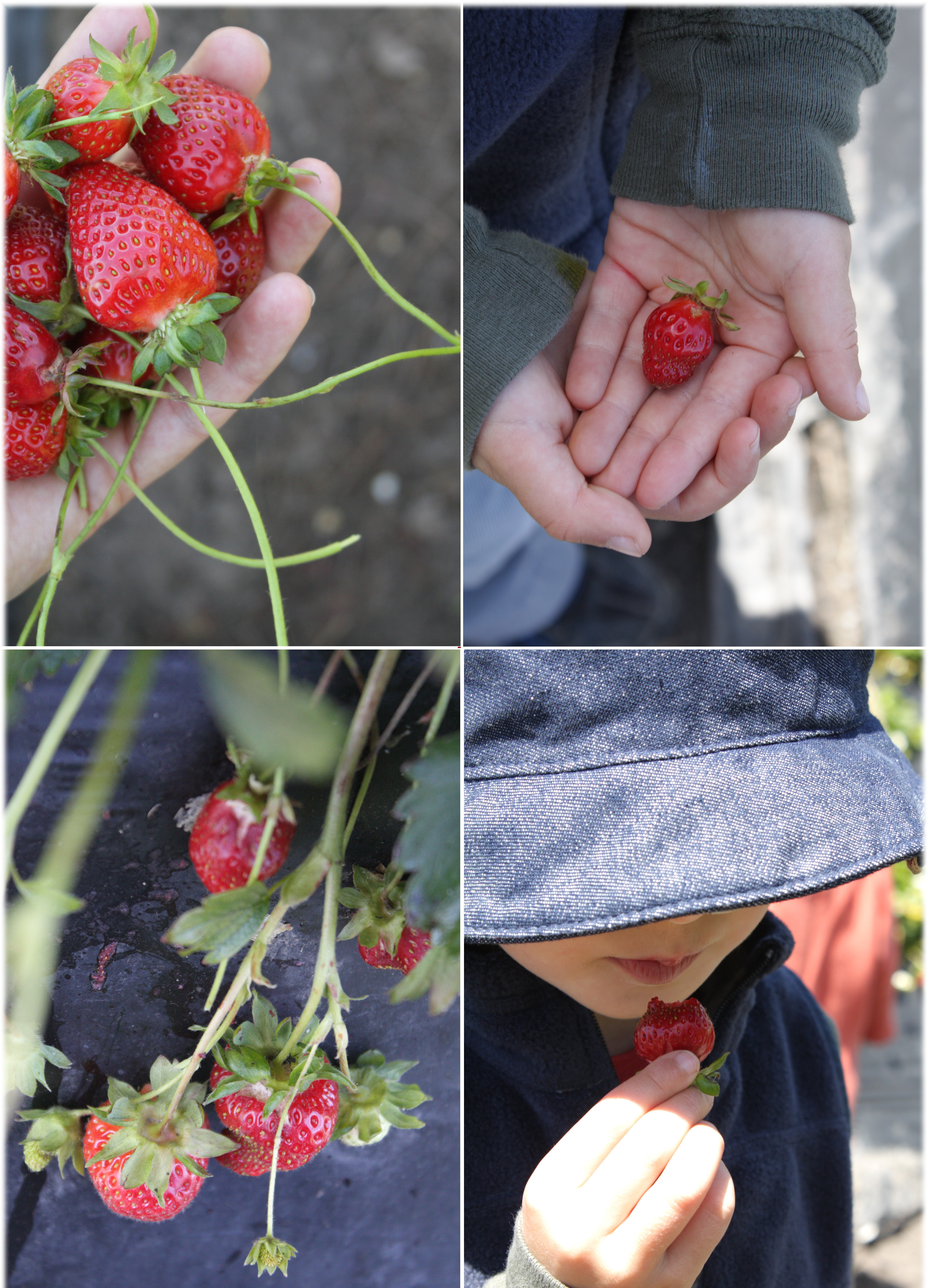 השבוע העמסנו אותם לאוטו, לשעה וחצי נסיעה שהביאה את כל המשפחה לשדה גדול של תותים, שם ניתן בקטיף עצמי ללקט אותם אדומים, מתוקים וכל-כך יפים. שלושה קוטפים ועוד אחת שרודפת אחרי קטנצ'יק אחד שרוצה לקטוף אותם דוקא ורדרדים- לבנים. חויה שעושה טוב לנשמה, עם כל הירוק והמרחבים האלו בעיניים.