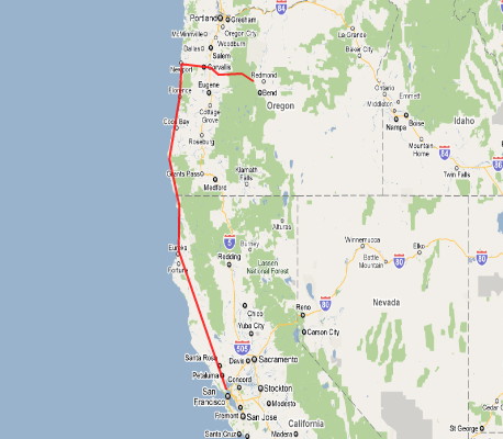 מסלול: מעבר ממרכז אורגון לכיוון החופים, נסיעה לאורכם עד הבית