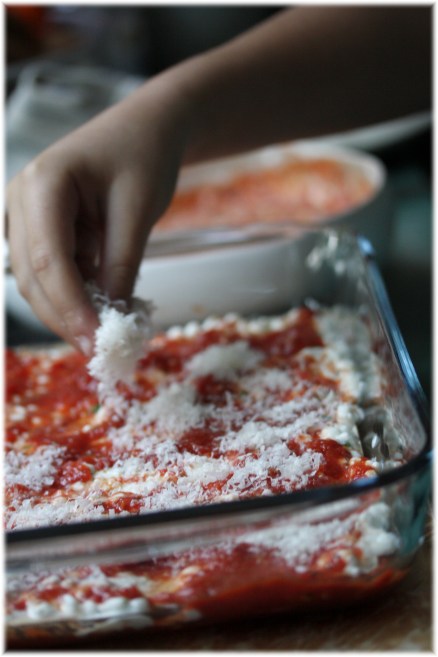 מרפדים תבנית עגולה 24 ס"מ/ "9 בנייר אפיה ומשמנים את דפנותיה. מחממים תנור ל- 180 מעלות צלסיוס/350 פרנהייט.