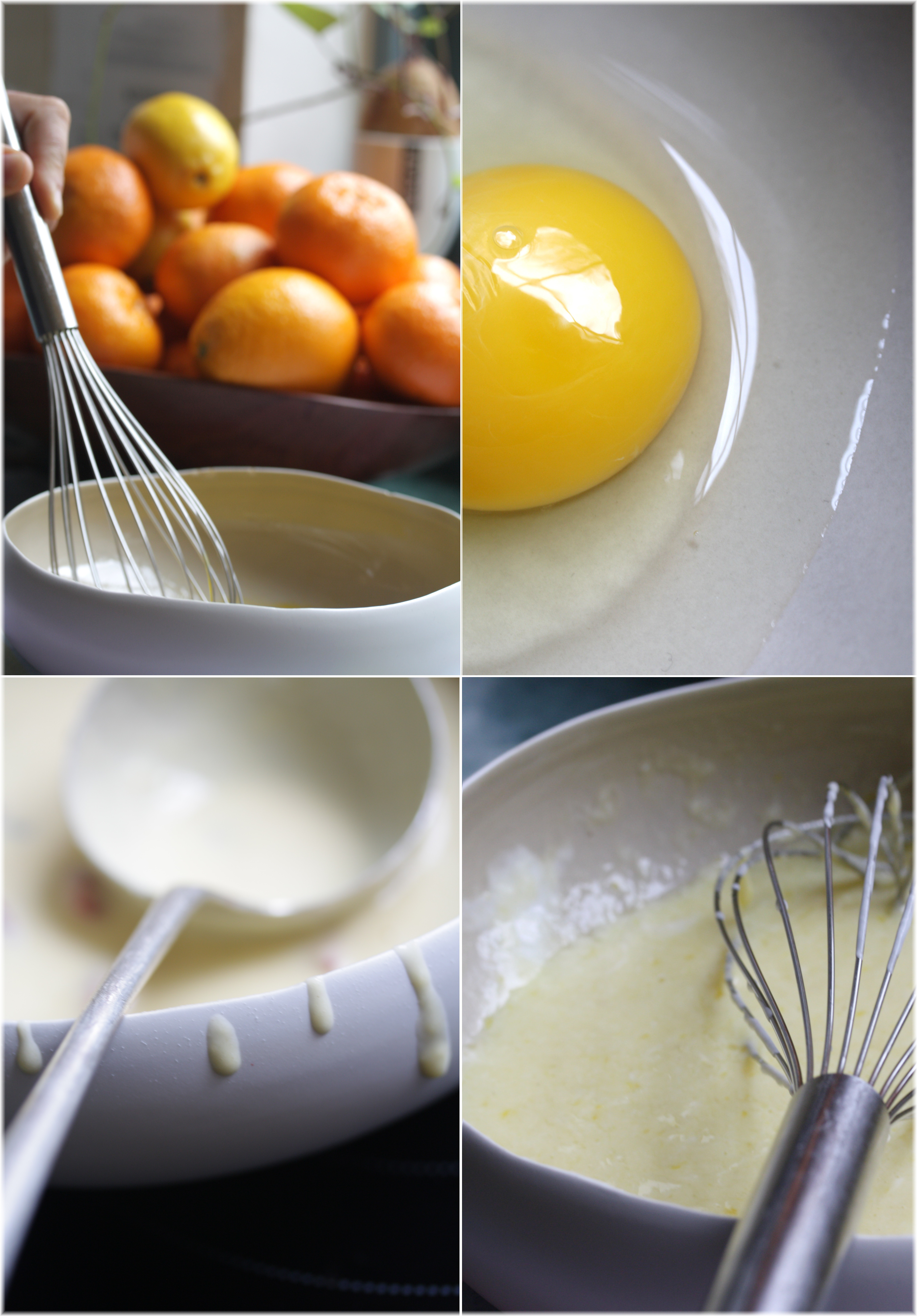 מכינים את העוגה: בקערה גדולה מערבבים יחד חלמונים, שמן, חלב ונותני טעם.